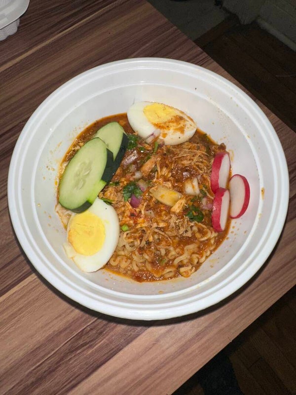 Ramen noodles topped with your choice of Beef,chicken or Shrimp mozzarella cheese, onions and cilantro and egg. Served with consomé, three crispy cheese tacos and cucumbers,radish, lime wedge and salsa verde